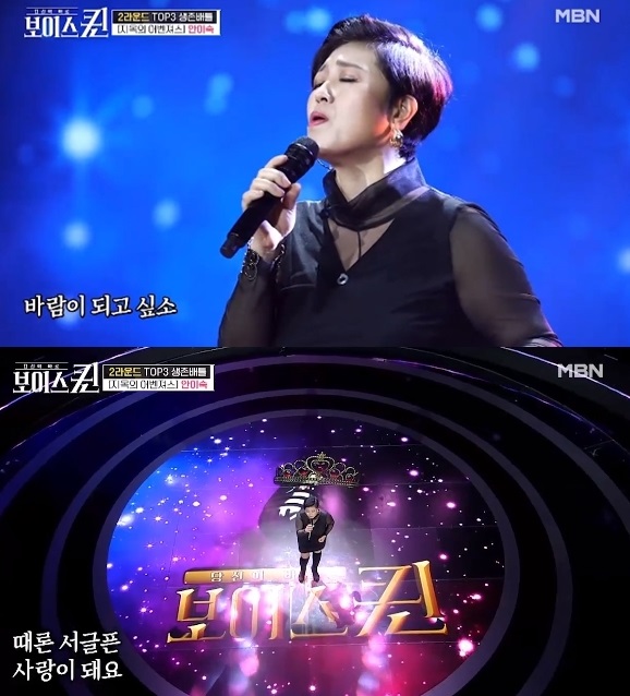 2019년 12월 5일 방송된 MBN '보이스 퀸'에서는 5명씩 조를 이뤄 경쟁해 3명만 다음 라운드에 진출하는 본선 2라운드 무대가 방송되었습니다.