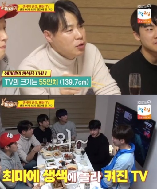 최현석은 인공지능 기능을 통해 TV를 켜고 본격적으로 생색을 냈는데 최현석은 "다른 브랜드보다 38만원 차이가 나는데 비싼 걸로 샀다"며 비싼 가격을 강조하면서 생색을 내는 재밌는 모습을 보여주었습니다.