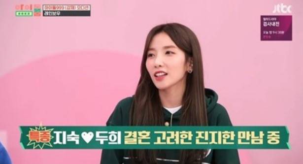 과거 라디오 스타에 출연해서 이두희와 진지하게 만나고 있지만 아직 결혼이야기가 오간 것은 아니라고 밝힌 적이 있는 지숙이죠!