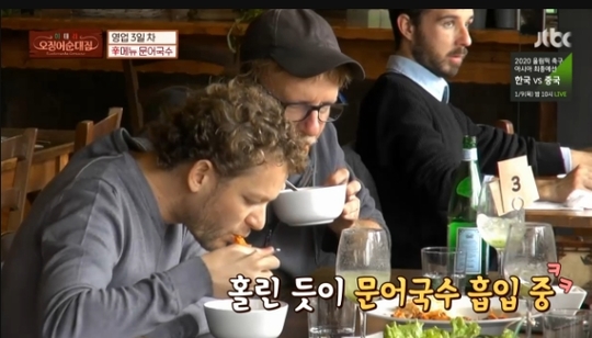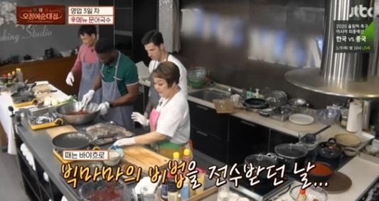 영업 3일차 세 사람은 알람을 잘못 맞춰 식당에 지각했는데, 한 시간 늦은 10시가 다 돼서야 도착한 세 사람은 점심 장사 준비로 마음이 급해진 오징어식당의 셰프들이였네요. 특히 전날 알베르토는 문어국수를 신메뉴로 예고한 바 있어 주방은 더욱 분주한 모습을 보여주었습니다. 알베르토는 빅마마 이혜정에게 문어국수를 배우던 중 “이태리 사람들이 문어를 많이 먹는다. 샐러드나 회로도 많이 먹는다”고 문어를 메뉴로 정한 이유를 밝혔습니다.