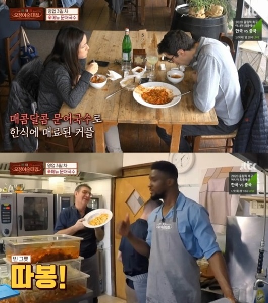 알베르토의 매콤한 문어국수를 가장 먼저 접한 손님들은 “생각보다 안 맵다” “김치 올려 먹어야지” “정말 맛있다”라며 만족해했다. 한 노신사는 직접 국수를 비비더니 폭풍 먹방을 시작했고 취향저격인듯 젓가락질을 멈추지 않는 모습을 보이면서 역시 알베르토가 문어국수를 신메뉴로 잘 선정한 것 같네요!!