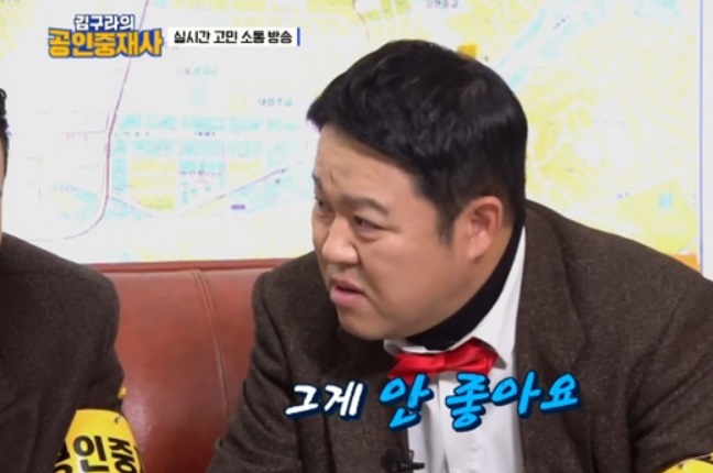 2020년 1월 6일 방송된 MBC에브리원 '김구라의 공인중재사'에서 방송인 김구라는 시청자의 재혼 질문에 공개 연애의 단점을 언급한 김구라네요!!