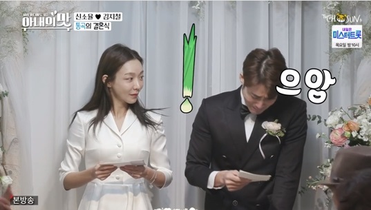 신소율과 김지철을 결혼식 중 각자의 부모님에게 쓴 편지를 읽는 시간을 가졌는데 신소율은 "이 시간을 꼭 넣고 싶었다"고 말하는 모습을 보여주었습니다.