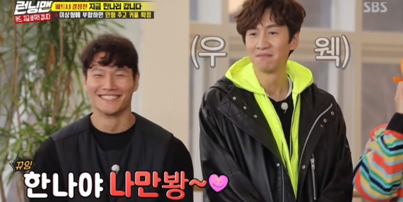 김종국이 강한나와 파트너가 되기 위해 이광수와 애교 삼행시 대결을 하는 모습이 방송되었습니다.