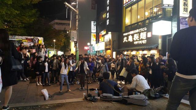 위 사진은 평일저녁의 홍대거리사진이지요. 주말만되면 사람이 엄청 많고, 중,고등학생들이 거리에서 춤을 추면서 공연을 하고, 불쇼, 그리고 각종버스킹에 홍대거리는 정말 시끌시끌하고 젊음의 열기가 넘칩니다.