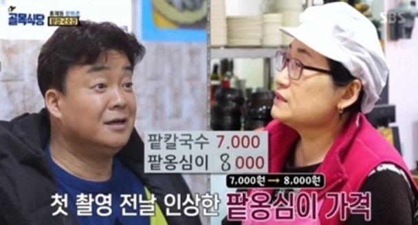팥칼국숫집 사장은 옹심이를 직접 만들기 힘들다며 시제품으로 구입해서 사용하겠다고 말했고 팥칼국수 가격도 천 원 인상하고 싶다고 밝히는 모습을 보여주었네요!