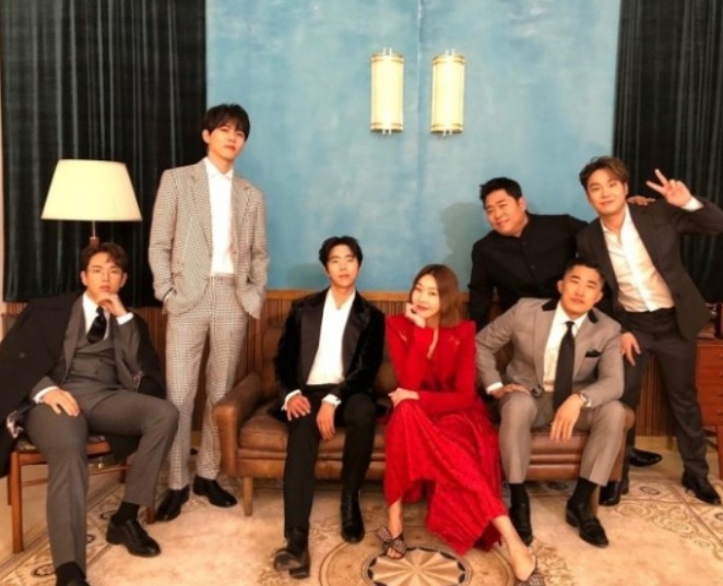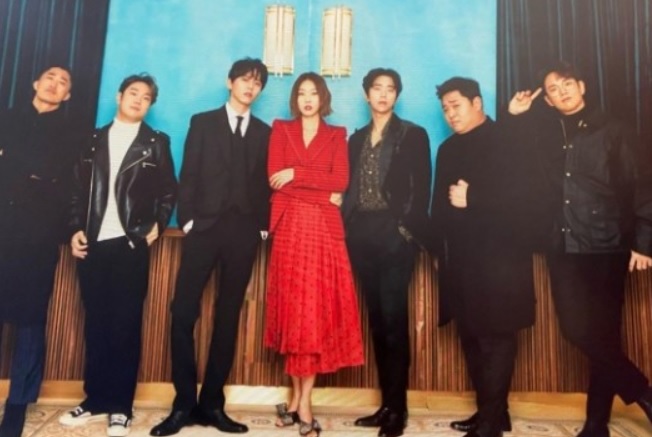 공개된 사진 속 한혜진은 김동현, 문세윤, UL(유재환), 윤현민, 장성규, 주우재, 김동현과 함께 한껏 차려입은 모습으로 사진으로 프로그램을 홍보하고 있는 한혜진이네요!