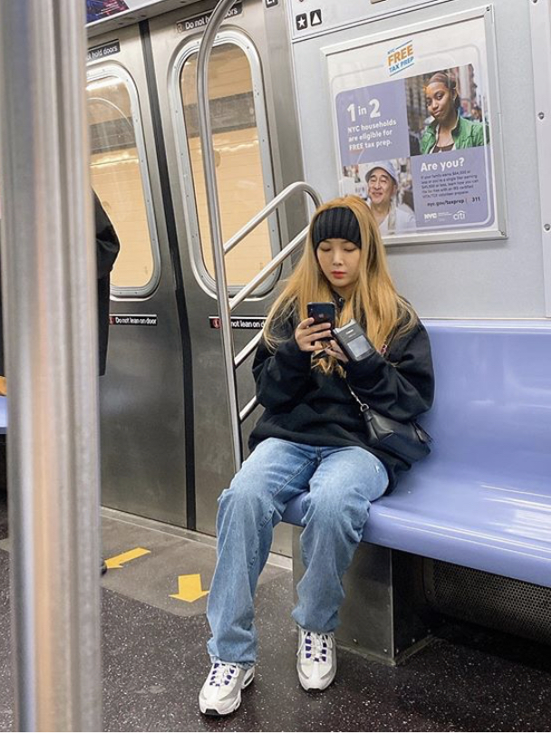 유빈은 2020년 2월 17일 자신의 인스타그램에 뉴욕 지하철 안에서 찍은 사진 한 장을 올렸습니다.