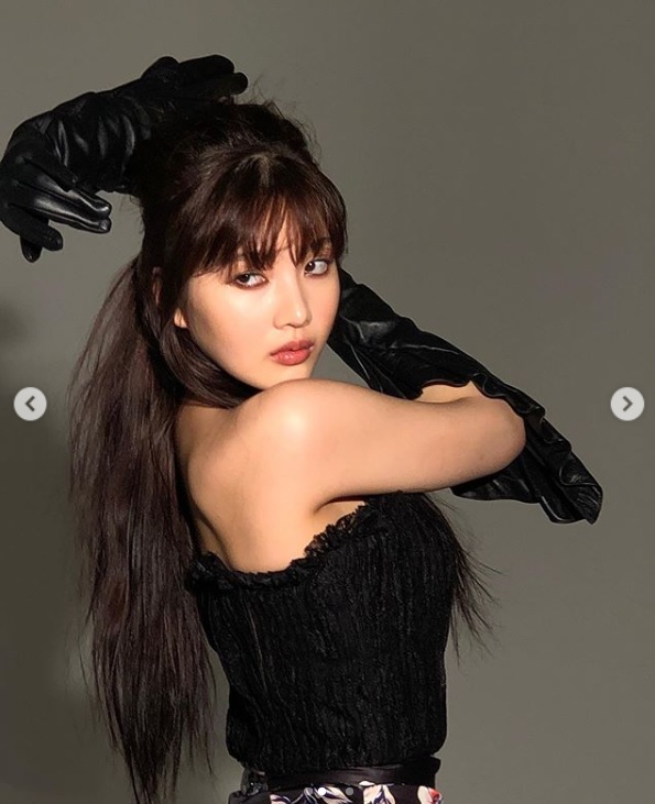 사진 속 조이는 어깨가 드러나는 검은색 상의를 입고 화려한 꽃무늬 치마를 입고 섹시한 매력을 보여주고 있고, 조이의 섹시한 스타일링은 새로운 조이의 모습이네요!!