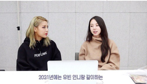 공개된 영상에서 유빈은 원더걸스 멤버였던 배우 안소희와 함께 신곡 ‘향수(PERFUME)’ 뮤직비디오를 감상하며 이야기를 나누었네요!